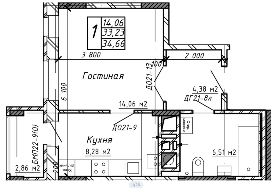 Площадь от 33 м2