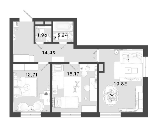Площадь от 67.39 м2