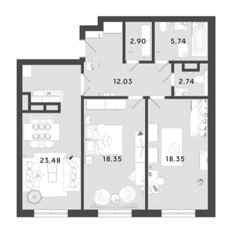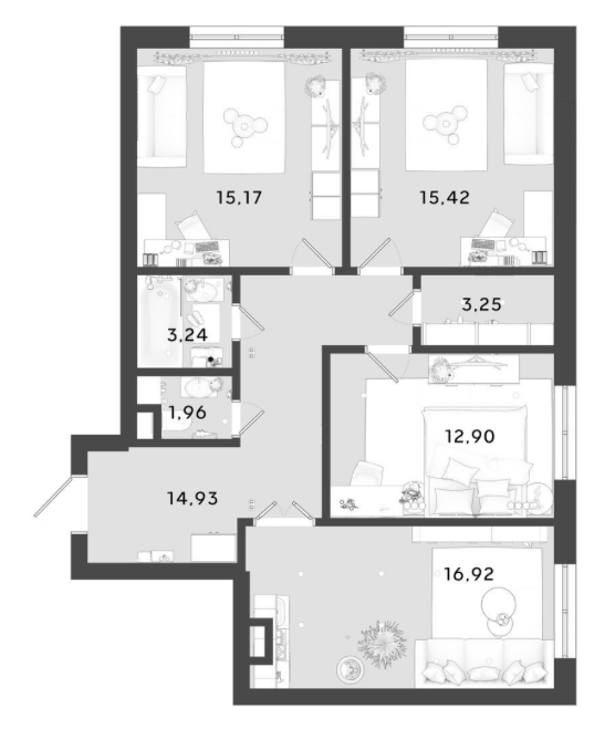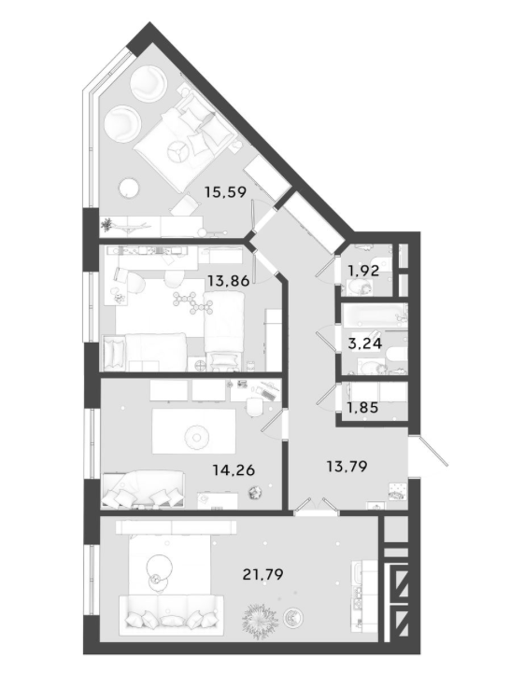 Свободные планировки апартаментов без отделки — легко собрать план под себя и свой образ жизни.