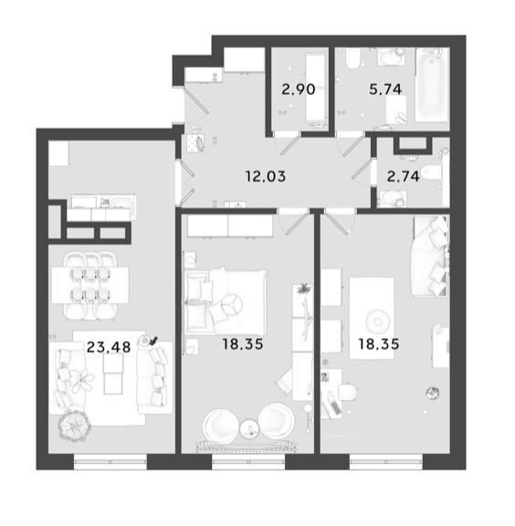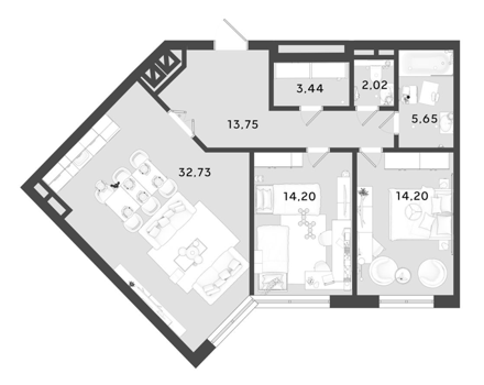 Площадь от 83.79 м2