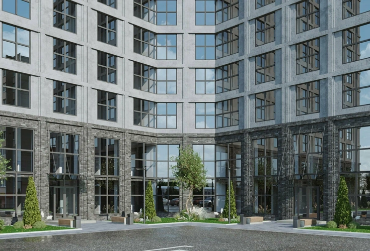 Современный вентфасад, большие окна, продуманные лобби, 4 лифта — эстетика и удобство каждый день.